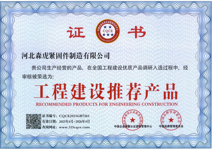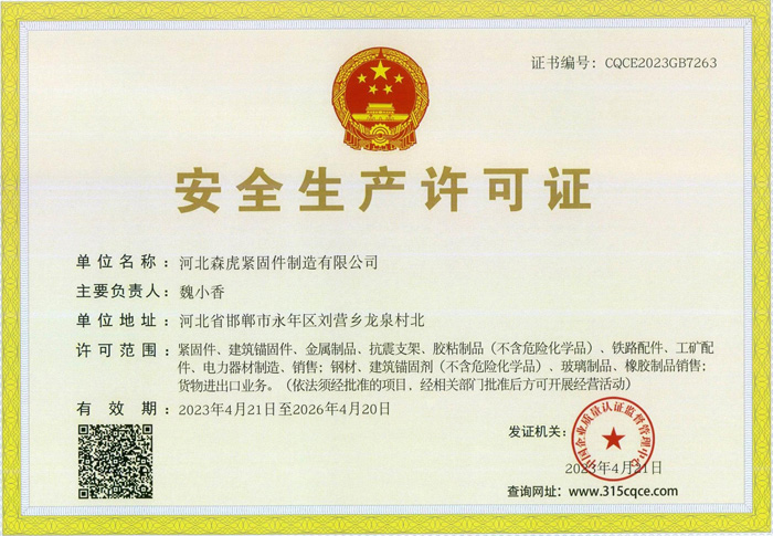 河北森虎緊固件制造有限公司成立于2011年,是建廠(chǎng)較早的緊固件企業(yè)。西臨京廣線(xiàn),東臨京深高速,地理位置優(yōu)越,交通便利。 主要生產(chǎn):化學(xué)錨栓、機(jī)械錨栓、定型化學(xué)錨栓、高強(qiáng)度8.8級(jí)化學(xué)錨栓、自切底機(jī)械錨栓、車(chē)修壁虎,膨脹螺栓,植筋膠。 質(zhì)量方針:先進(jìn)技術(shù)、科學(xué)管理、優(yōu)良品質(zhì)、用戶(hù)滿(mǎn)意; ...